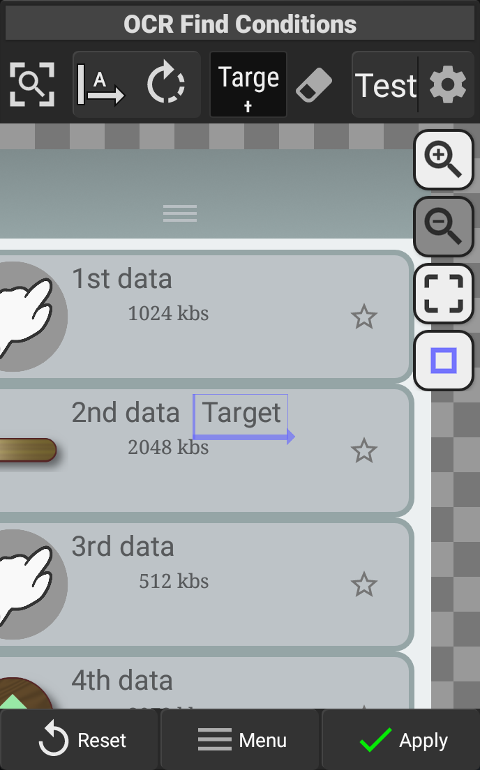 In Screenshot Open OCR Conditions to edit the configuration and the position of target with testing.