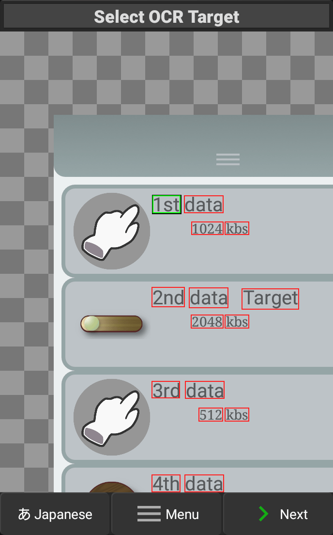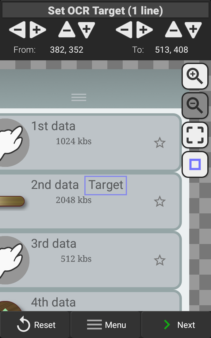 In the screenshot image, select one target as initial sample, from strings found by OCR calculation. The selected sample will be used for initial conditions of subsequent settings.